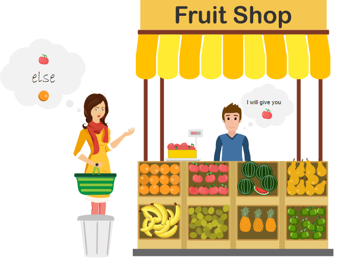 JavaScript এ else statement হচ্ছে if এর বিপরীত অর্থাৎ যদি কোনো কারণে if statement শর্ত পূরণ করতে ব্যর্থ হয় অথবা if statement যদি true না হয়।, তাহলে Program তার বিকল্প কোন অংশ execute হবে, তা নির্ধারণ করার জন্য যেই statement ব্যবহৃত হয়, তাকে বলা হয় else statement । আরেকটু সহজ ভাবে বলি, ধরুন আপনি দোকানে যাবেন আপেল অথবা কমলা ফল কেনার জন্য, এবং সিদ্ধান্ত নিলেন যদি আপেল ফল না পান তাহলে আপেলের পরিবর্তে কমলা ফল কিনে নিয়ে আসবেন। বাস্তব জীবনের এই চিত্র টি ই JavaScript এ if-else statement দিয়ে সমাধান করা হয়। নিচের Image টি লক্ষ্য করুন :