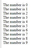 text += "<br>The number is " + i;